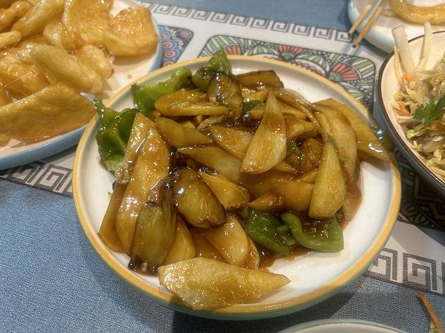 锅包肉 可能是改良过的 看到当地人再吃 点了一份 炸的比较脆 口感好 但味道纯甜 糖色炒的也不算太好 没有哈尔滨的锅包肉好吃