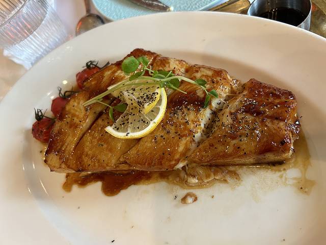 俄罗斯深海黑椒蝶鱼,很大很大很大的一份而且,没想道这么大还是最后才上,其实端上来那会已经吃饱了,但是鱼肉挺鲜的钱,没什么黑椒味儿,浇汁儿是照烧口味 味甜 挤上些柠檬🍋吃起啦更清爽些。