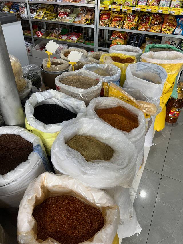 调料区 考最边上的一个小门脸儿一进去就闻到很香很香很香的调料味道,买了几斤烧烤蘸料/干料 10块一斤,比西市场便宜很多很多 都可以品尝。 也有拌饭酱、啤酒酱,大酱这些 ,下午去西市场 发现这里的真的是便宜