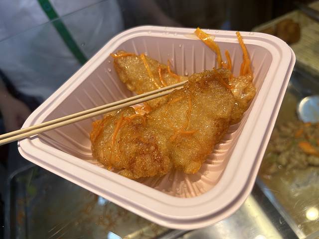 三块起卖 称斤 看到店家切里脊肉 感觉很鲜的 👍 裹的面衣不是很厚 肉挺大块 汁也是酸甜 可以尝尝