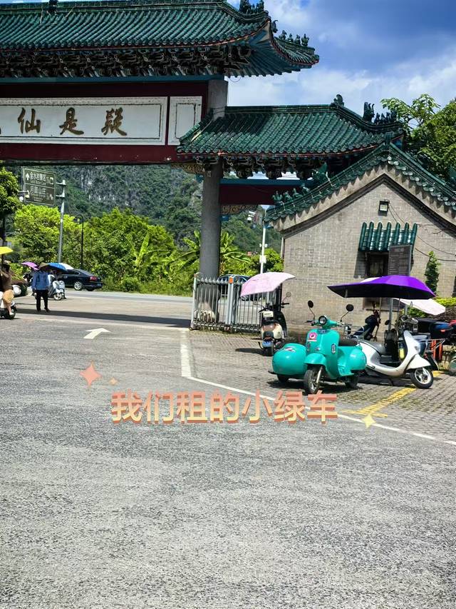第二天睡到自然醒才出门,所以已经很热了。原计划是我和老公一人骑一辆电动车,再带一个人,但因为我不熟练,还是决定不租车了。阳朔到处都是出租电动车的,有40元一天的,也有30元一天的,可以多问问比一下价。