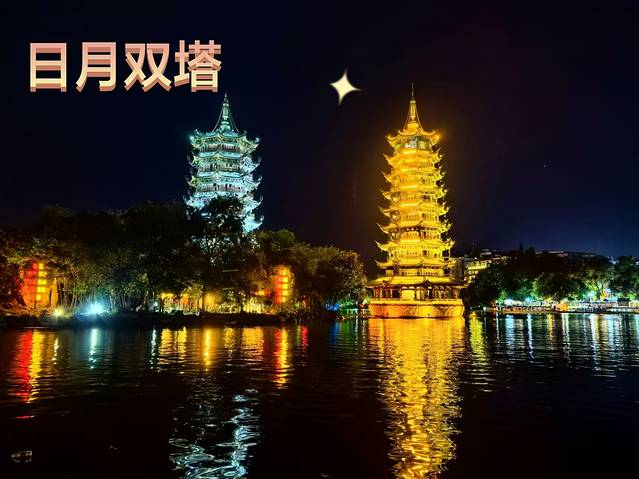 两江四湖离象鼻山不远,几步路就能到,因为时间还早,没有亮灯,我们去商场逛了会儿。晚上,景区亮灯后,游客很多,步行的那个小桥也就两米左右宽,上面人潮汹涌,有人着急赶时间插队,就有一种会把别人挤下去的感觉。这个地方旅拍的特别多。我们也是把双塔拍照后就赶快走了。