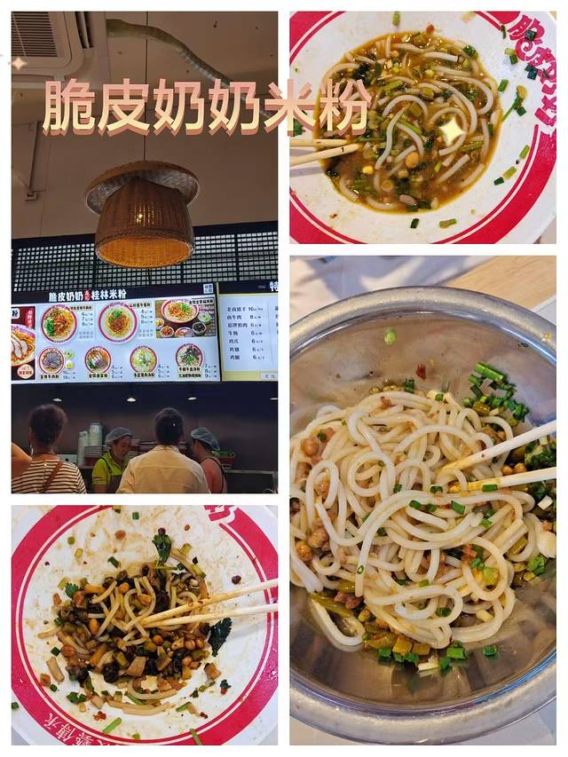 晚饭就吃了当地特色,桂林米粉,店家是叫脆皮奶奶,米粉加的料不一样,价格也不一样,便宜的五六元,贵的要一二十元。味道都不错,个人最喜欢那个脆皮肉。