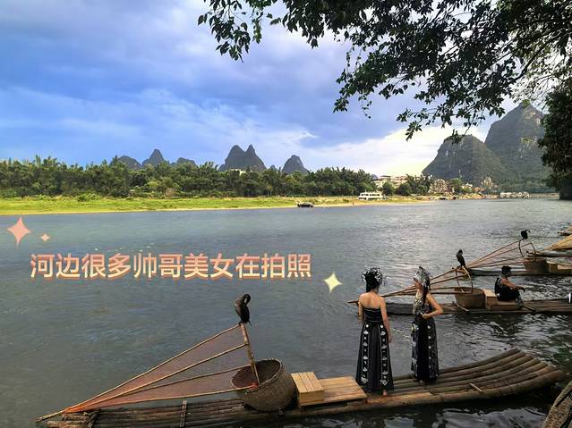 拍照的小姐姐~鸬鹚、竹筏都成了拍照的道具。这是最边上的几个拍照的人,另一边满满的全是旅拍~