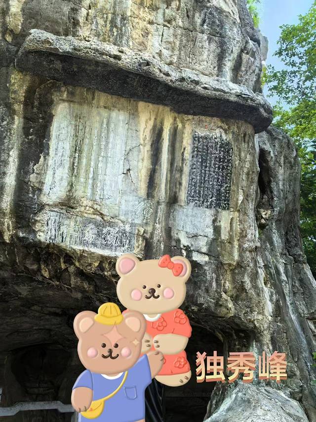 王城内的独秀峰,山上很多历朝历代的碑刻,有些已经风化了。“桂林山水甲天下”就是图上黑底的那一块文字里的一句。
