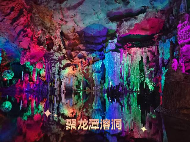 打了车准备去十里画廊,司机说有三轮车可以租,便要司机直接送我们到一家可以租三轮车的店去了。就是以前电视里日军坐的那种边三轮,只是外观更加可爱,颜色也是马卡龙的色彩。这种三轮车贵一点,140元三个钟头,我们租了一辆,刚好能坐下。整个行程中,小孩最喜欢的就是这个坐三轮车了,觉得很拉风,真是哭笑不得。十里画廊的路上很多都是骑电动车的游客。兜了一圈,临时决定去溶洞看看,本来准备去金水岩的,路上遇到一个给自己饭馆拉生意的小姐姐,说她买票优惠一点,便要她带我们去了,门票50元一张,等游览完出来之后兜风的时候,才发现我们去的是聚龙潭,而不是之前想去的金水岩···