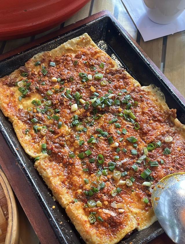 铁板香煎豆腐,味道中规中矩,裹上外面酱汁味道更好!