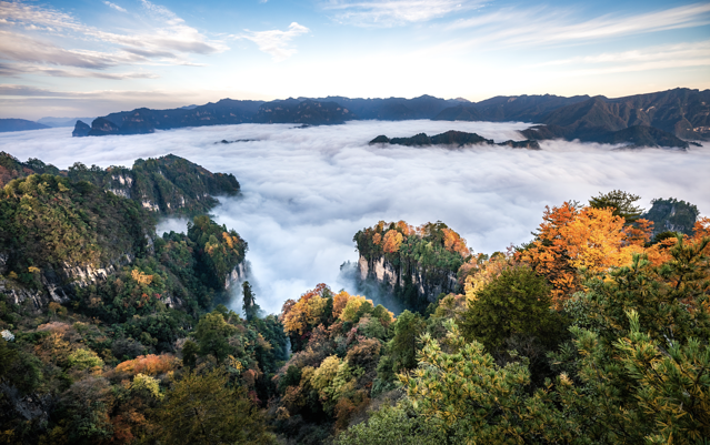 每年深秋时节,光雾山就变得五彩斑斓,不少人会选择到光雾山旅游景区的燕子岭开启赏秋之旅,据说看红叶与云海更配哦~