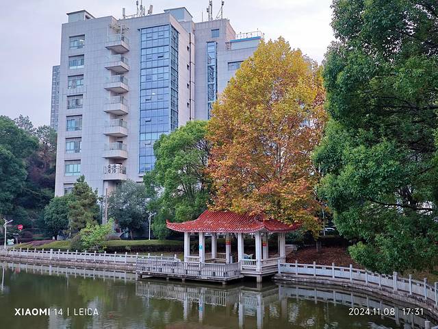 国家级长沙经济与技术开发区管理委员会(管委会)办公地,对外人开放随便出入,就在我家的斜对门,是散步溜达的好去处。管委会三面环山,中间一个小小的湖,湖北边是办公楼。