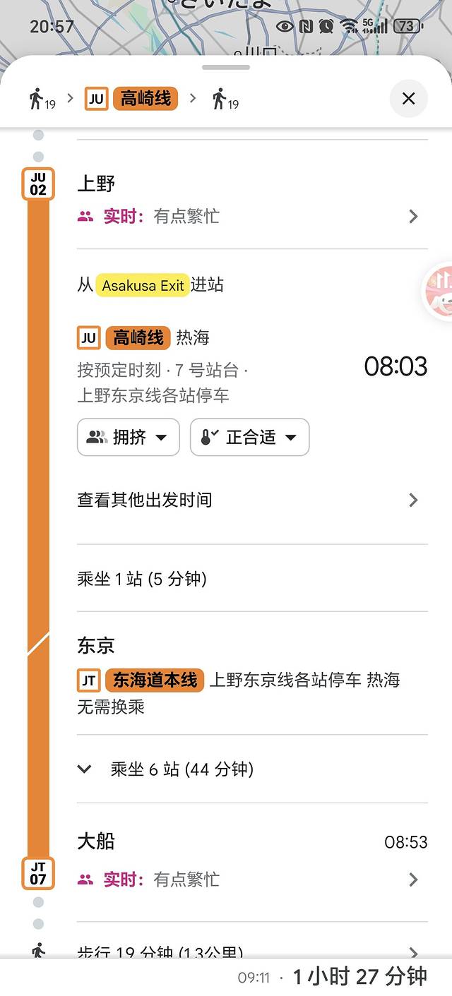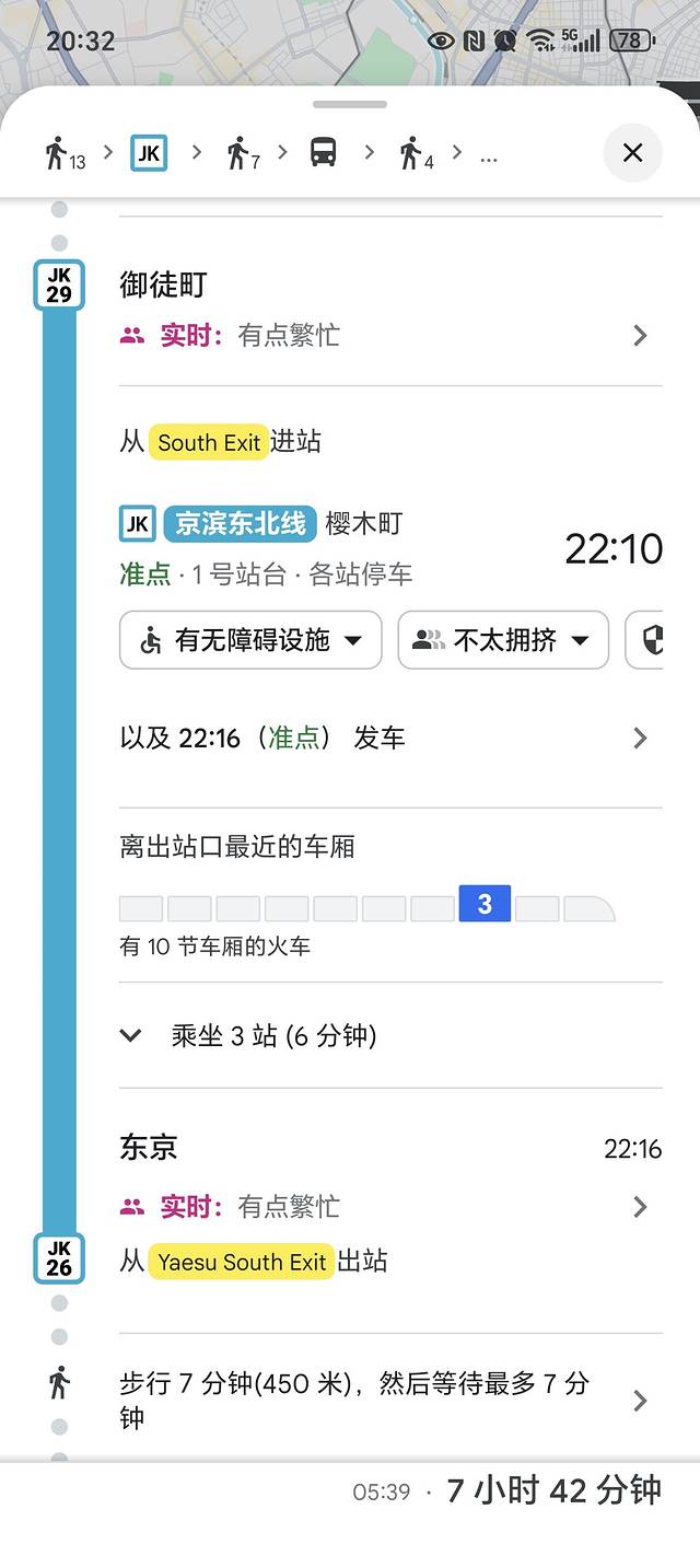 到达:东京⻋站、品川、涩谷、新宿、横滨
