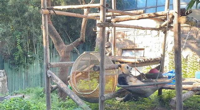 今天是在北京的最后一天,怀着激动的心情,我来到了北京动物园大熊猫馆!并且见到了熊猫萌兰和他的妈妈!萌兰作为北京动物园的大明星,不仅拥有可爱的外表,还是一只十分聪明又善解人意的大熊猫。听说在他幼年时期就会帮助饲养员将不听话的小伙伴们赶回兽舍。几年前还因为贪玩从围栏里爬了出来!他不光会使用工具爬出围栏,还有自己的饲养的宠物麻雀和小猫!我想见萌兰很久了,他非常可爱热情,仿佛知道自己是个大明星,还会隔着玻璃和我们击掌!我真是开心极了,熊猫馆真是不虚此行!