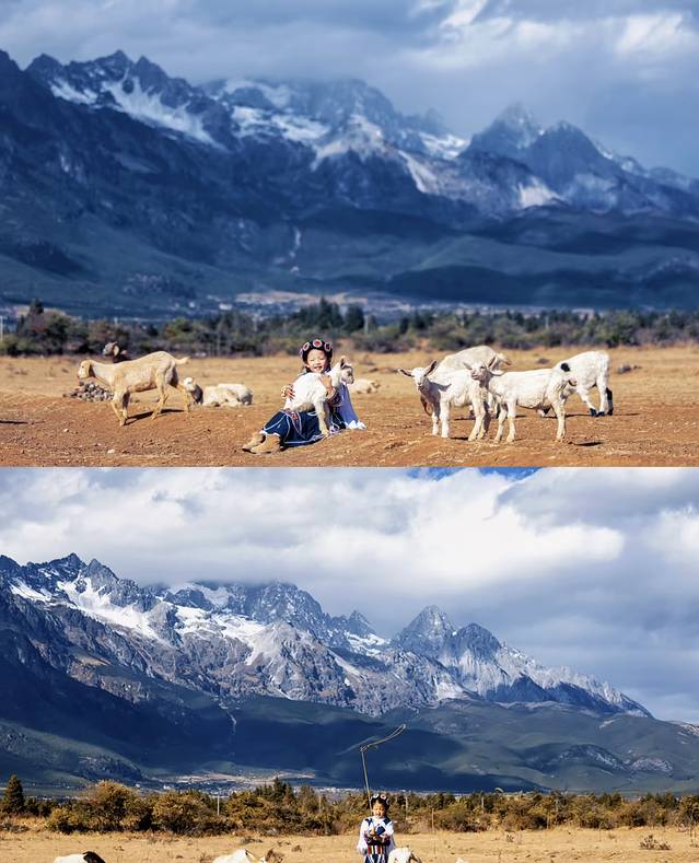 虽然是一个拍照基地,但是可以体验在雪山下放羊喂羊。离白沙古镇十分钟的路程。