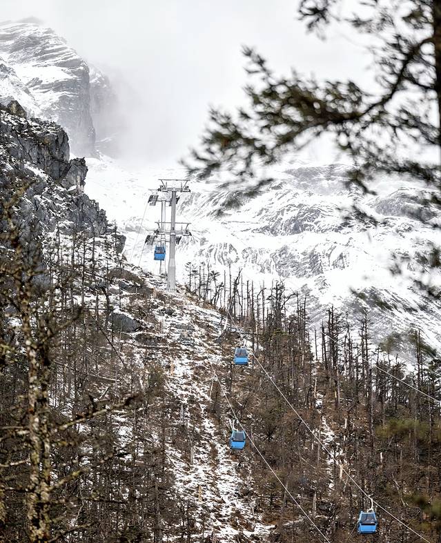 去牦牛坪的缆车是没有玻璃半封闭的,一路直面看雪山特别震撼。