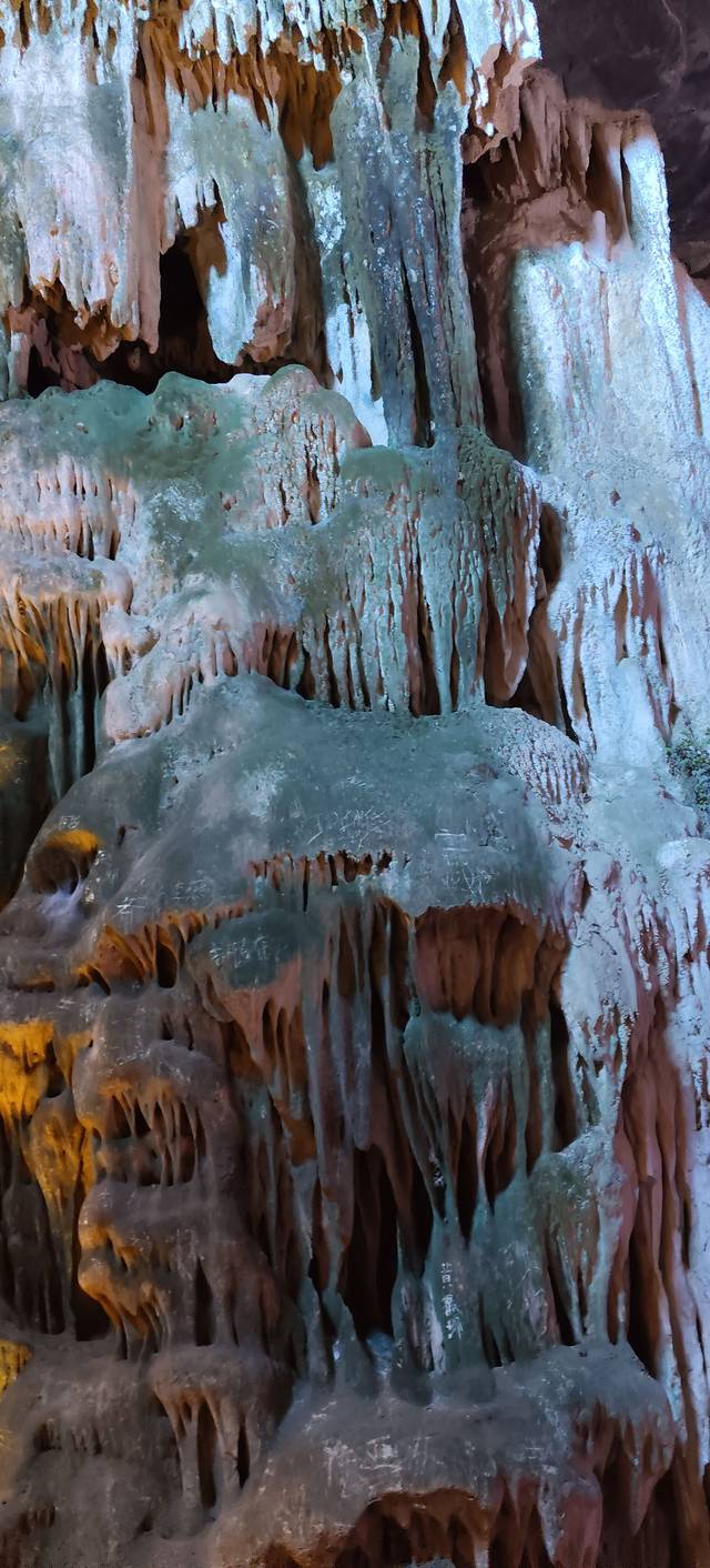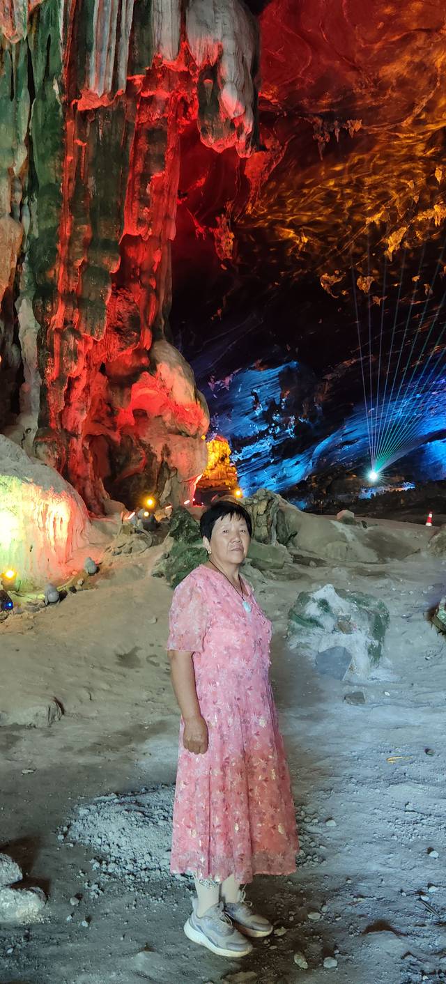 从远处看,洞口就像一头张开嘴的大水牛,特别有趣。走进洞里,更是别有洞天。这是个石灰岩大溶洞,地下水长年冲刷形成的,冬暖夏凉,特别舒服。里面的钟乳石也是千奇百怪,有的像石狮,有的像观音,简直是大自然的杰作!