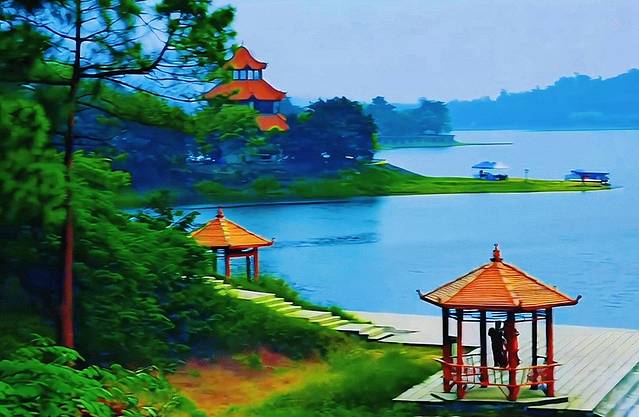 古宇湖宛如一颗镶嵌在大地之上的璀璨明珠,散发着迷人的光彩。湖水清澈碧绿,宛如一块巨大的翡翠,在微风的轻抚下泛起层层细腻的涟漪。湖边绿树成荫,花草繁茂,五彩斑斓的花朵竞相绽放,仿佛是大自然精心绘制的画卷。我沿着湖畔悠然漫步,呼吸着清新的空气,那带着湖水和花草芬芳的气息沁人心脾。