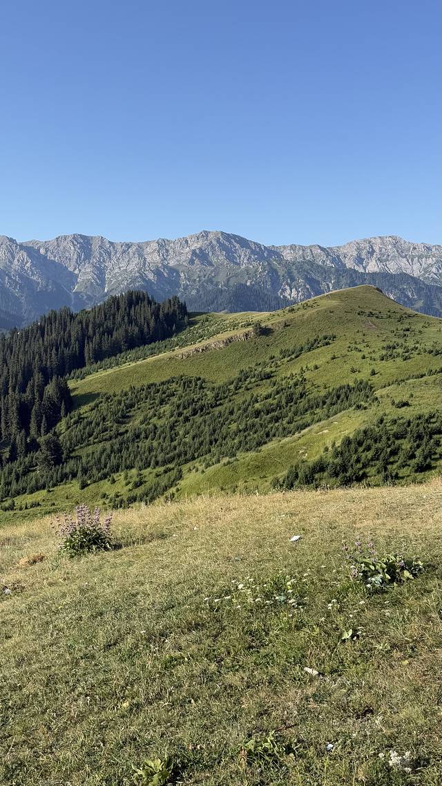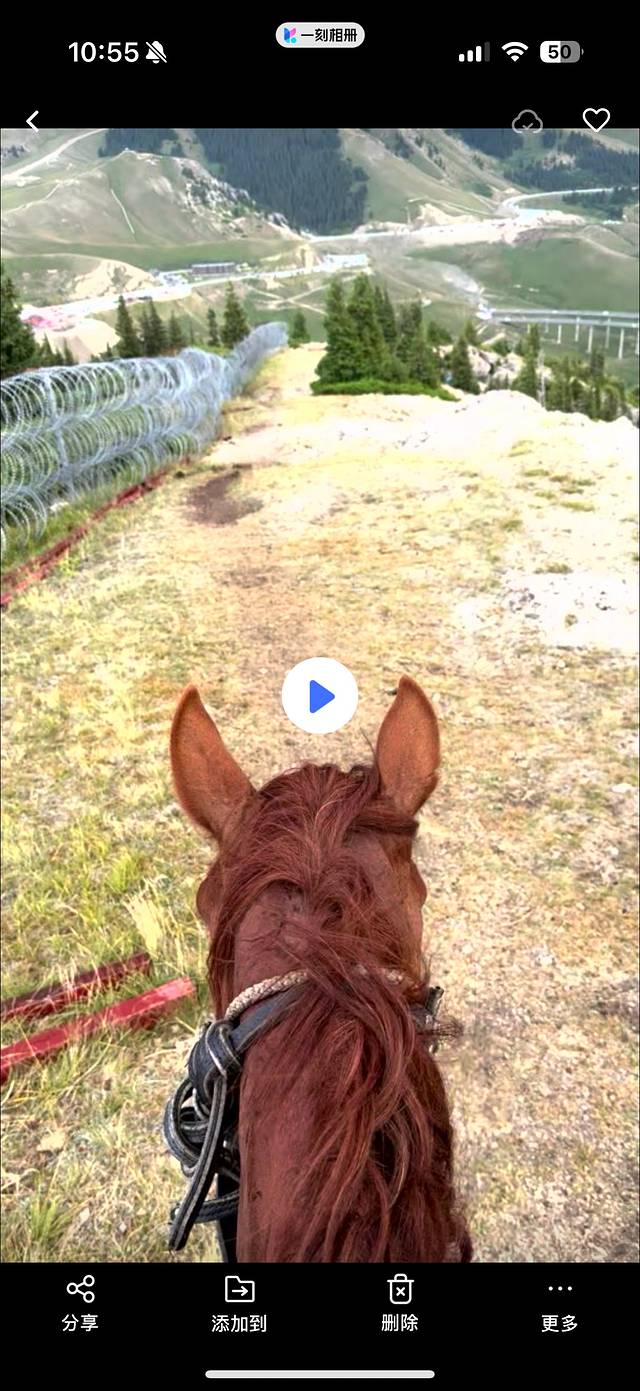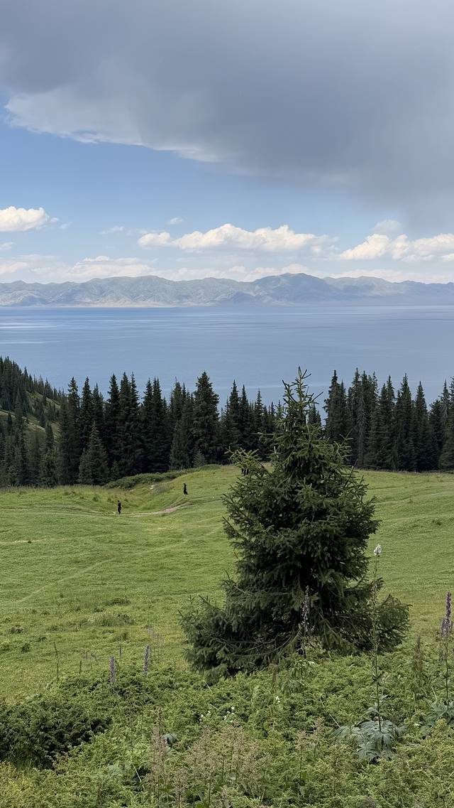 比较特别的就是我们的住宿,我是通过抖音博主联系到当地一位哈萨克牧民,她们家毡房在赛里木湖南门附近,我们坐的公共交通没法到达南门,但是可以通过爬松树头到达山顶再骑马可以过去,我想象中的骑马路程是比较平坦的那种路,实际是在悬崖边行走,道路崎岖不平,那过程那叫一个惊心动魄,回想起来还心有余悸。喜欢刺激挑战的可以挑战一下,胆小的还是在景区里面住比较好。不过毡房在半山腰,风景是非常不错的,相信全网应该找不到同款照片。